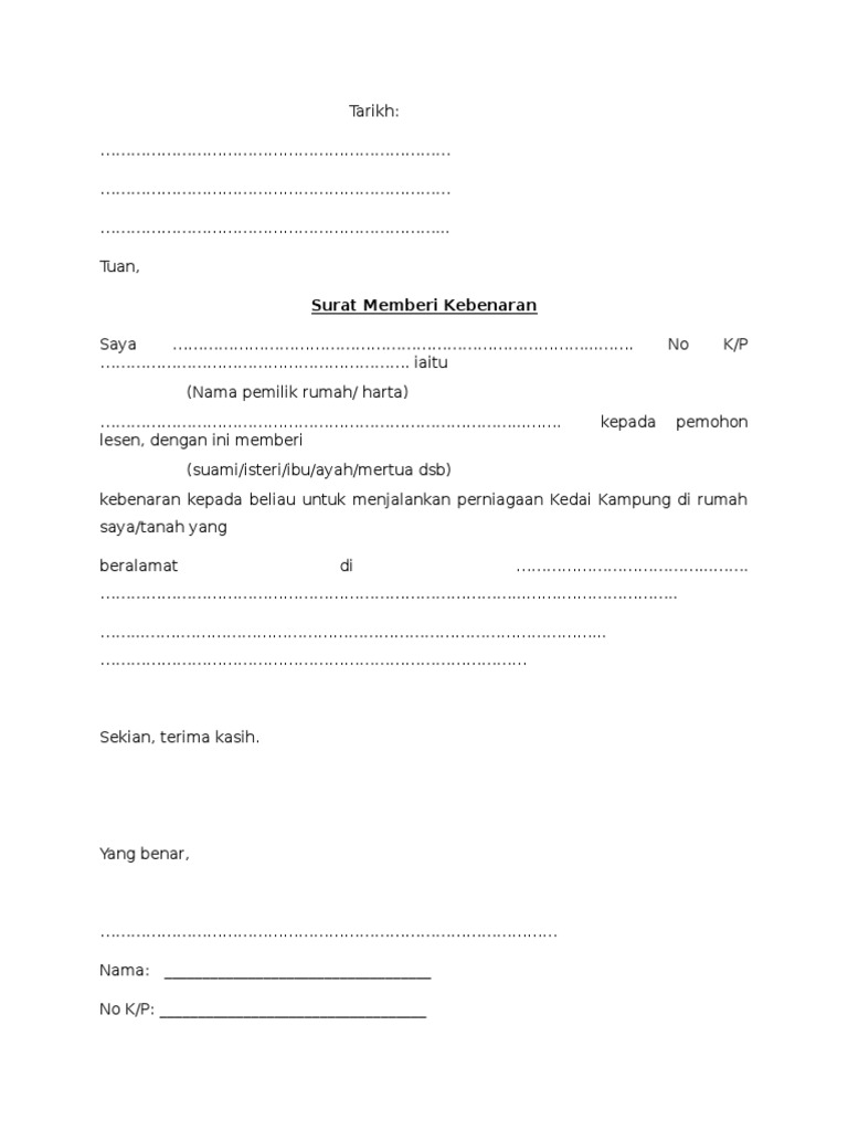 Contoh Surat Kebenaran Tuan Rumah Untuk Meniaga Di Rumah