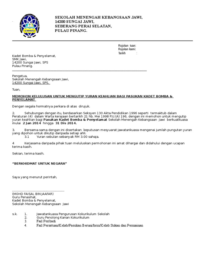 Kutip yuran dengan sistem pengeluaran automatik setiap bulan. Pengetua smk saujana utama persiaran saujana 3 47000 sungai buloh selangor darul ehsan tuan, permohonan penubuhan persatuan sejarah. Cipta beberapa pelan harga yuran untuk dapatkan lebih kutipan. Contoh surat rasmi dan format terkini yang betul percuma template from voize.my 1 surat kelulusan kutipan bayaran.