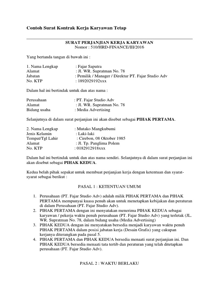 Kejelasan tugas dan tanggung jawab. Unduh sebagai docx, pdf, txt. Untuk membuat contoh kontrak kerja freelance yang berkaitan antara client dan freelancer, tentu saja dalam surat kesepakatan harus tercantum nama, alamat, dan kedudukan/status. Surat ini wajib perusahaan berikan pada calon karyawan sebelum pekerjaan mereka resmi dimulai. Ya pengesahan adalah diperlukan yang mana berpandukan kepada kad pengenalan. Contoh body email subjek lamaran kerja bahasa inggris yang benar biar dibalas hrd melamar pekerjaan kini sudah lewat media digital mulai dari dari iklan lowongan pekerjaan hingga mengirimkan surat dan berkas lamaran kepada perusahaan perekrut.
